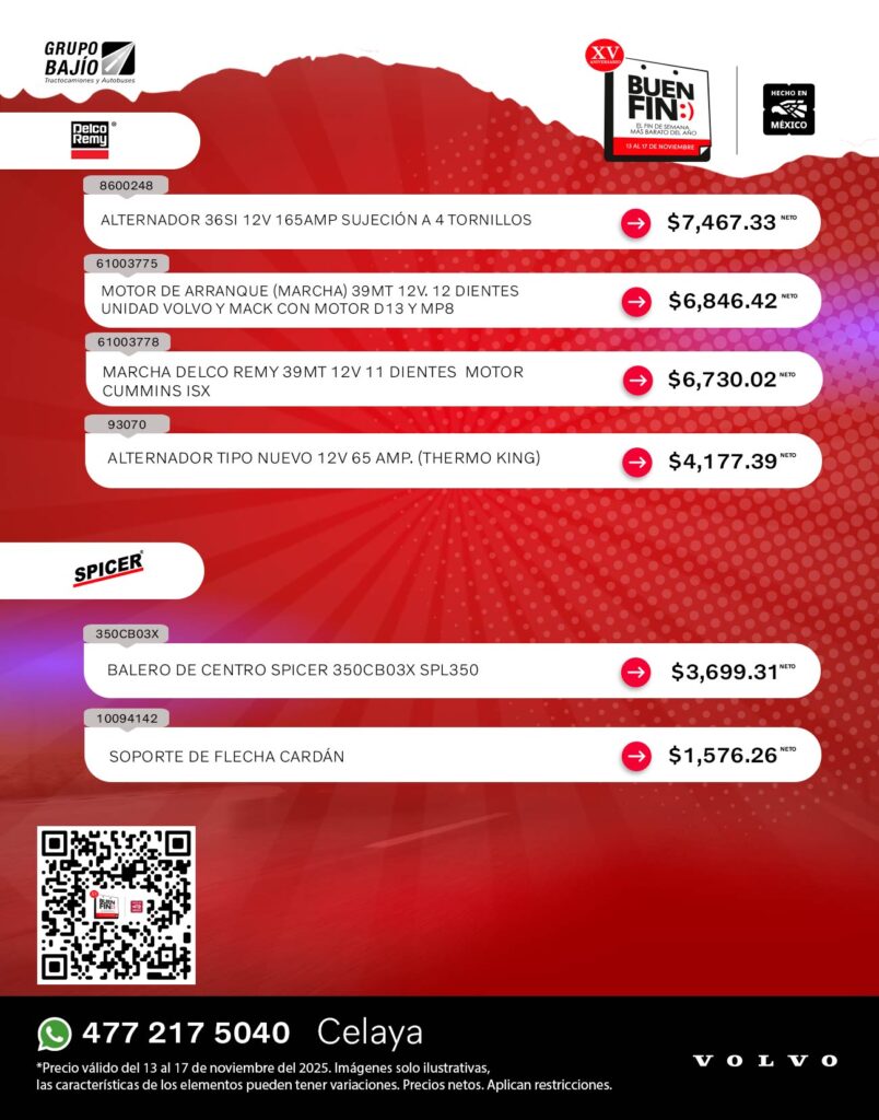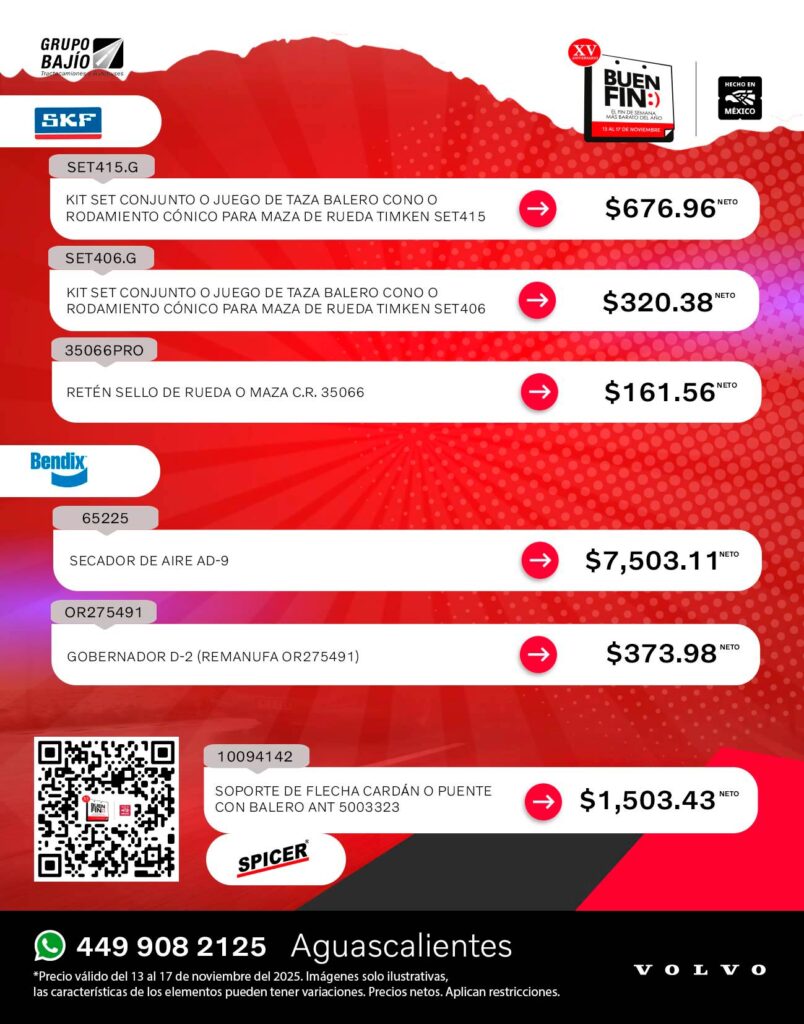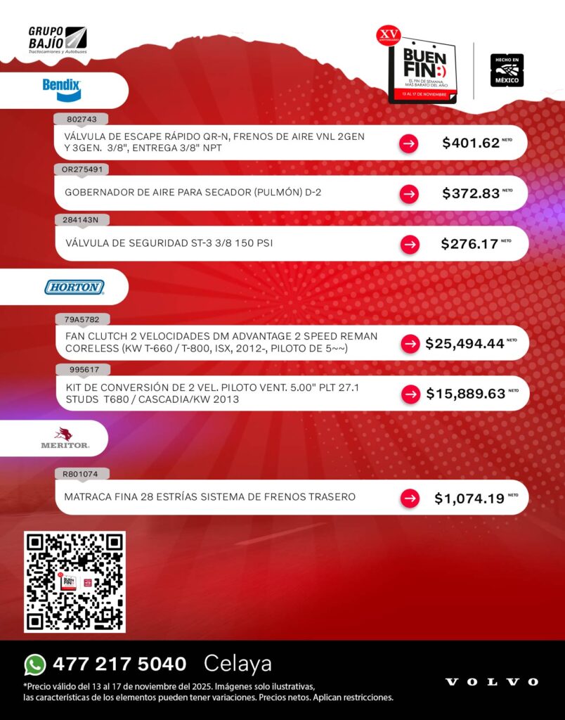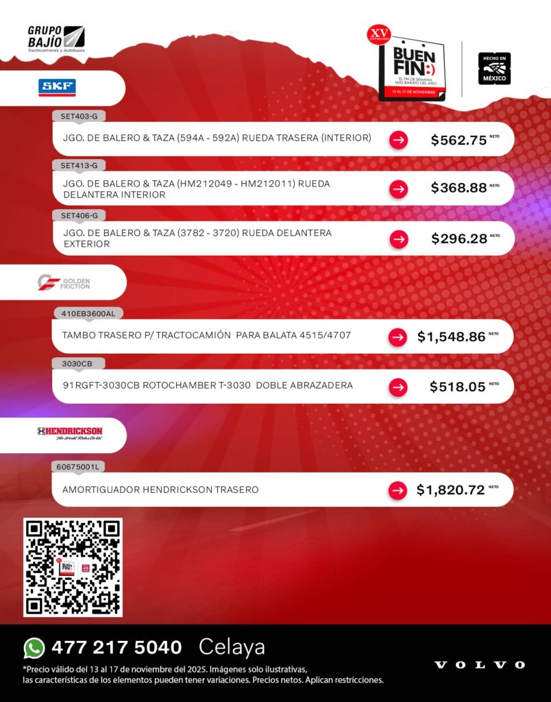 Las mejores promociones en refacciones para tractocamión de este Buen Fin están en Grupo Bajío.